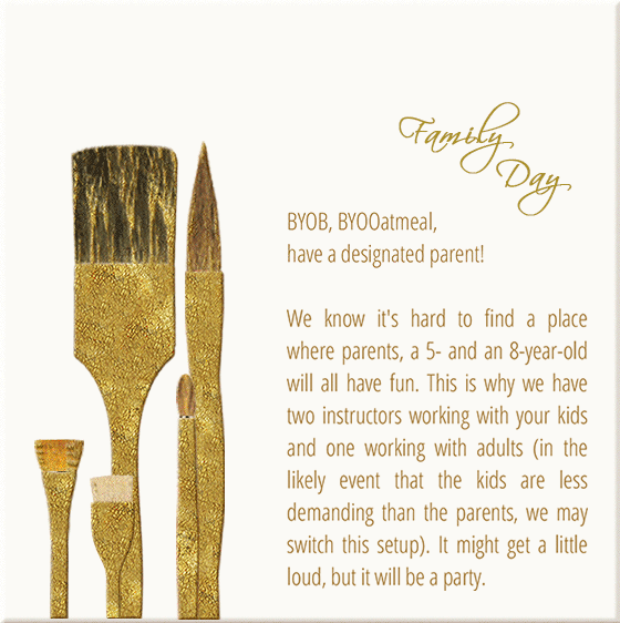 Wine and Beer: While you may attend our adult classes regardless of age (although those under 18 must be accompanied by an adult), TO CONSUME ALCHOHOL YOU MUST BE 21. Please have your ID with you. BYOB.